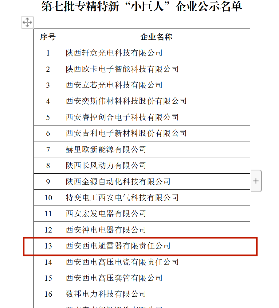 西电避雷器成功入选最新一批国家专精特新“小巨人”企业名单